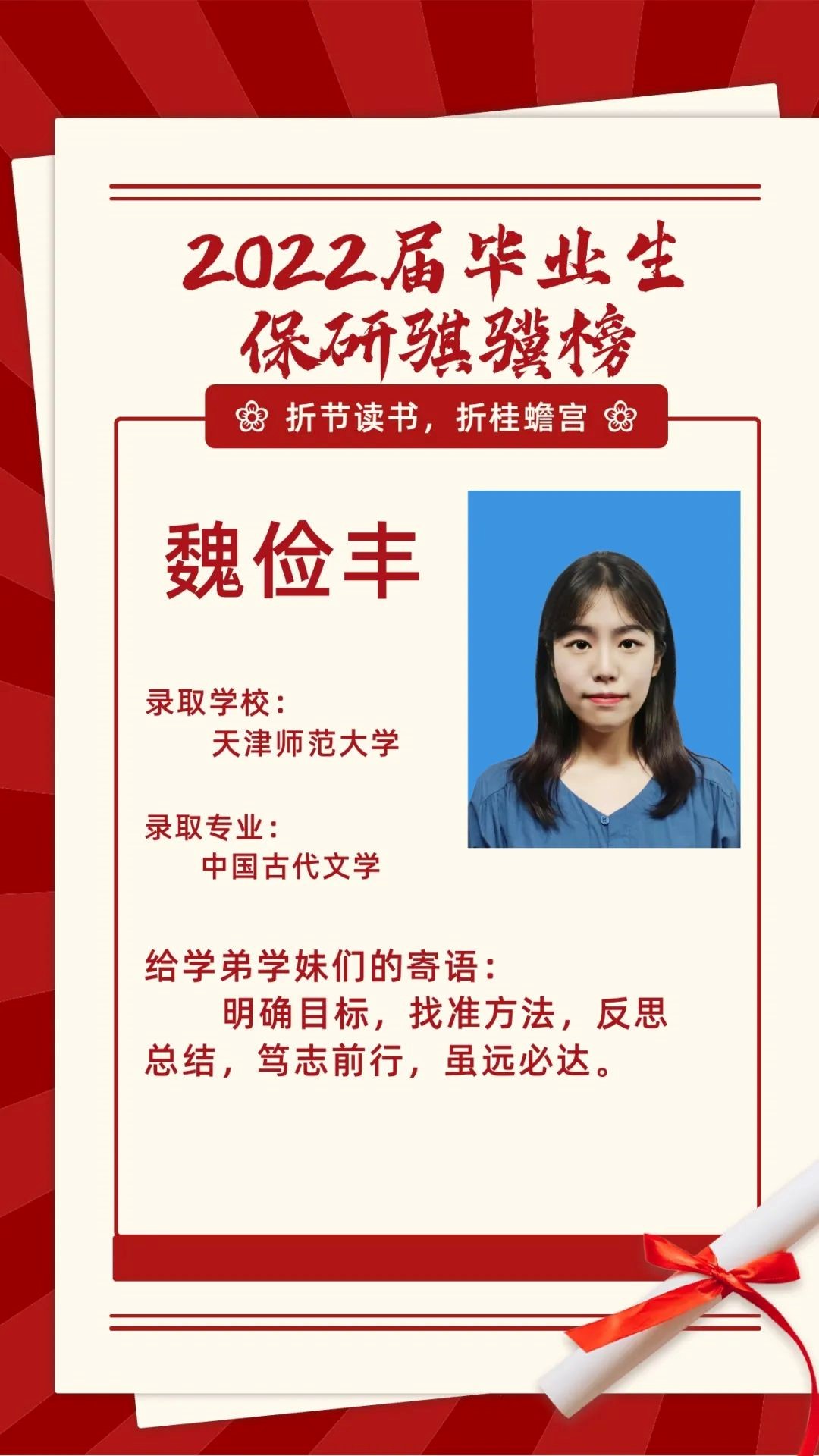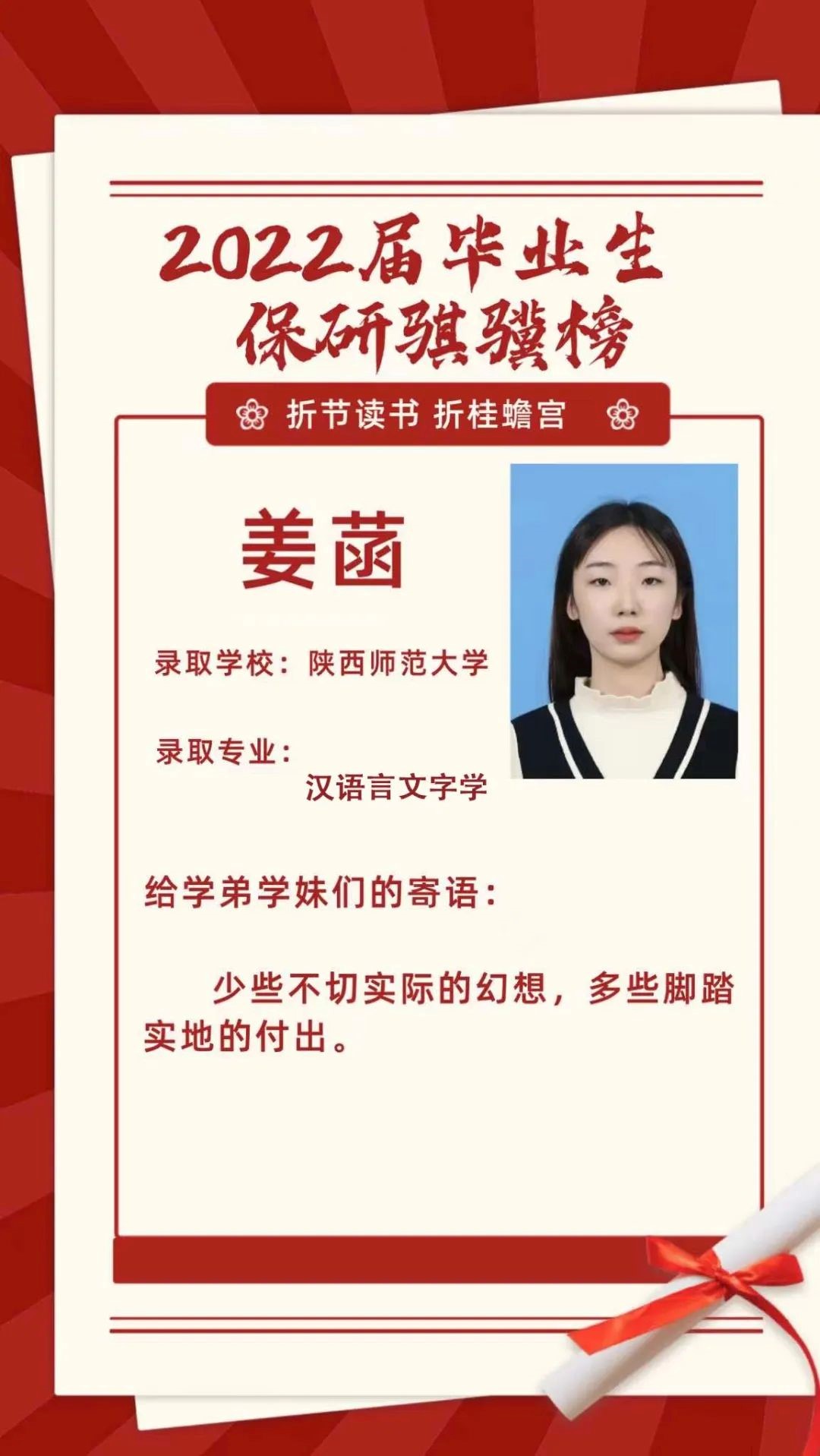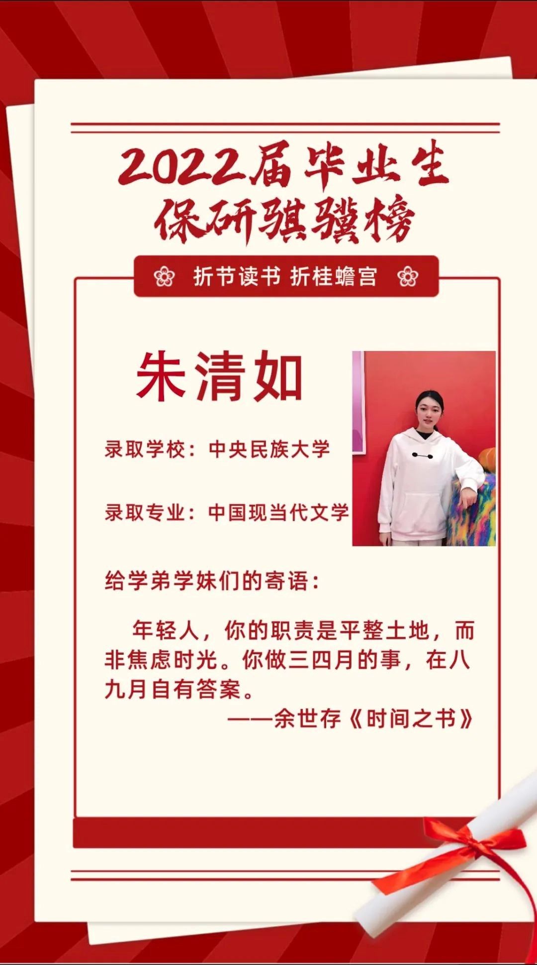 熬过籍籍无名,终有繁花着锦。有人风雨兼程用汗泪灌溉理想的种子,有人长风破浪赢得巴那斯山上摘下的桂冠,而期间是成百上千个夜晚的笔耕不辍、奋斗不息。大学时光,置身于人生中看似短促,但此几年究竟是“解道醒来无味”,还是“十年辛苦不寻常”,便要看是在春日暖阳中选择酣睡,还是在腊月严冬里选择伴梅苦读。让我们乘快风一阵,直探青云,走进2022届毕业生升学骐骥榜,借他山之石,琢己身之玉。