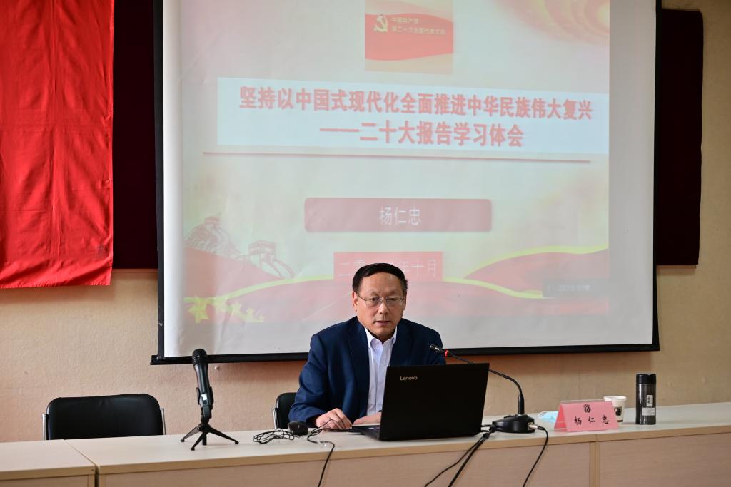 结合报告内容,杨仁忠从马克思主义中国化时代化新境界、新时代新征程中国共产党的使命任务和加快构建新发展格局,着力推动高质量发展等内容进行了详细阐述。他还围绕中国式现代化本质要求,中国式现代化的战略目标和步骤等方面进行了重点解读,强调了中国式现代化既符合中国实际,又体现出社会主义的建设规律。中国式现代化为推进中华民族伟大复兴吹响了冲锋号,为人类对现代化道路的探索贡献出中国智慧、中国方案,具有重要的世界意义。