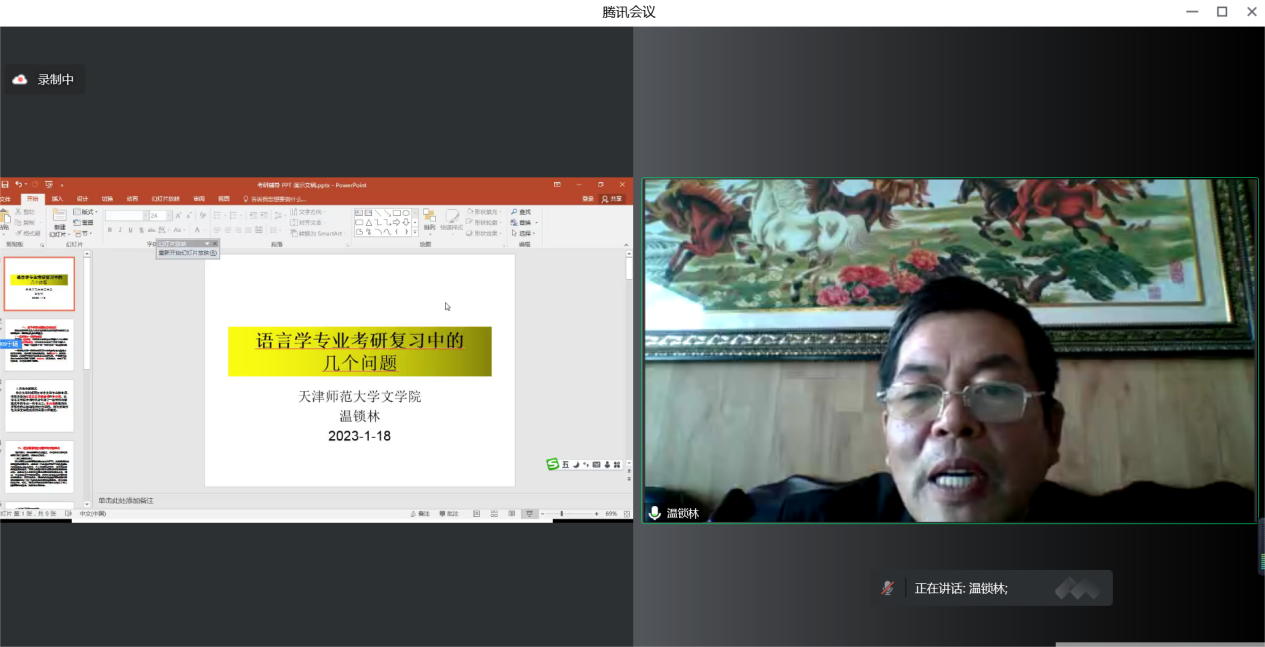 ABG欧博网官方网站汉语言文字学学科带头人、博士生导师温锁林教授围绕语言学专业考研复习中的几个问题进行了讲解。他通过举例和分析,简要概述古代汉语和现代汉语的特点,提出重视术语、研究对象、研究方法的建议,希望同学们无论是学术研究还是考研复习都要重视思考、拓展、计划和坚持。