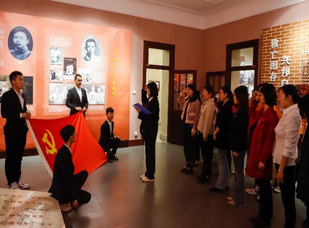 活动中,师生党员探访了位于河北工业大学东院内的北洋大学堂旧址,参观了河北工业大学校史馆,充分了解了在历次的爱国斗争中,广大进步青年积极投身革命洪流,为民族解放、国家统一和人民幸福展开的英勇斗争,馆内图片展现了先辈青年学生以国家为前程,以天下为己任,不惜牺牲个人换取民族独立的“成仁成义,为公为国”的红色精神。在光辉历史的洗礼下,在浩气长存精神的感召下,师生党员们面向党旗,重温了入党誓词,回首入党初心,将红色基因根植于心,融入青春血脉,厚植爱党爱国情怀,明确使命担当,将党的事业接力棒一代一代传下去。