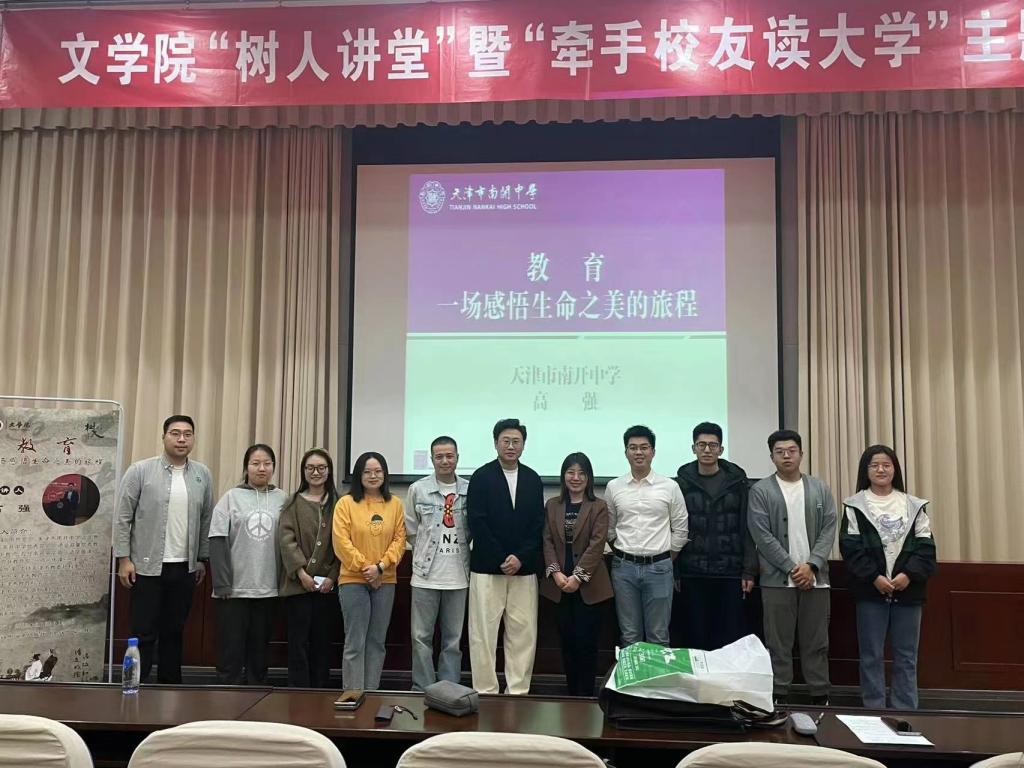 3月 30日下午,ABG欧博网官方网站“树人讲堂”暨“牵手校友读大学”主题活动在会议中心中报告厅举行,学院校友、天津市南开中学高三语文备课组长高强老师受邀担任主讲人。ABG欧博网官方网站党委副书记、院长赵利民教授,党委副书记、纪委书记张杨老师,ABG欧博网官方网站学工办副主任周全、辅导员隋明浩、刘莉莎以及学校、学院部分师范生代表线上线下共计 500余名学生参加了本次讲座。讲座由张杨老师主持。