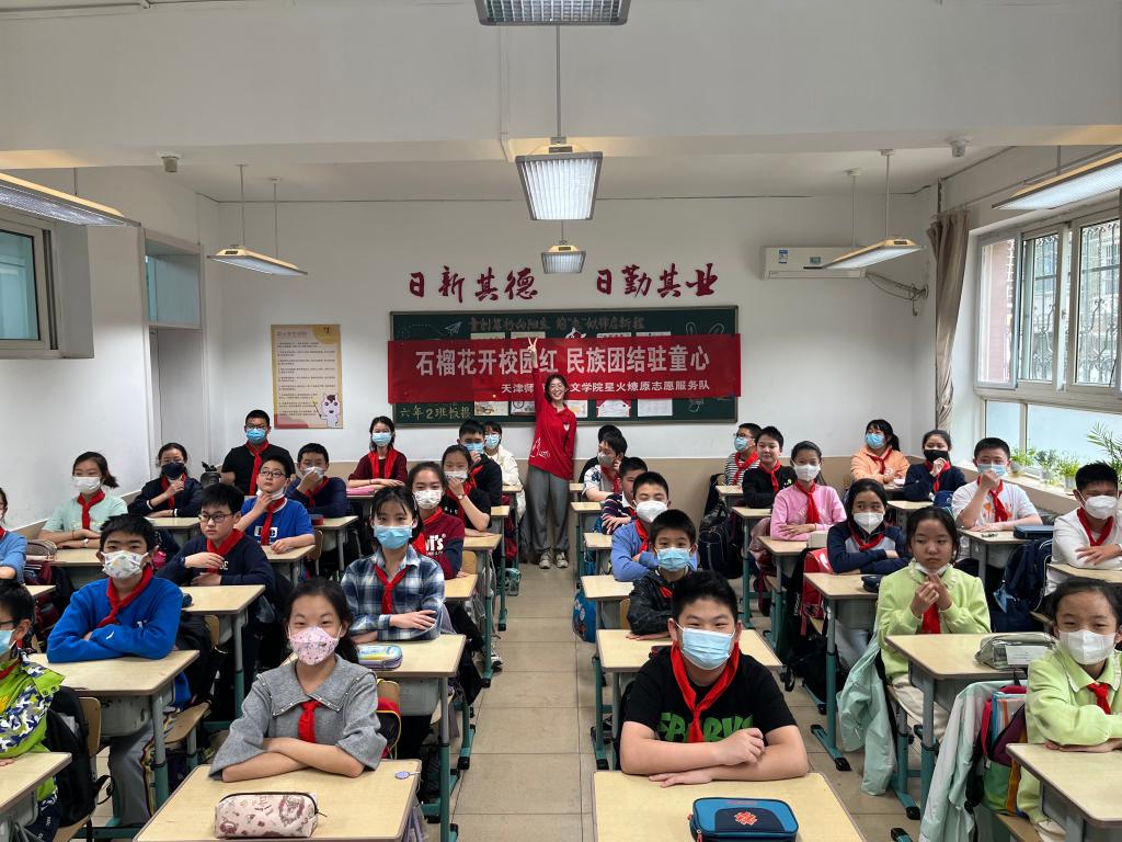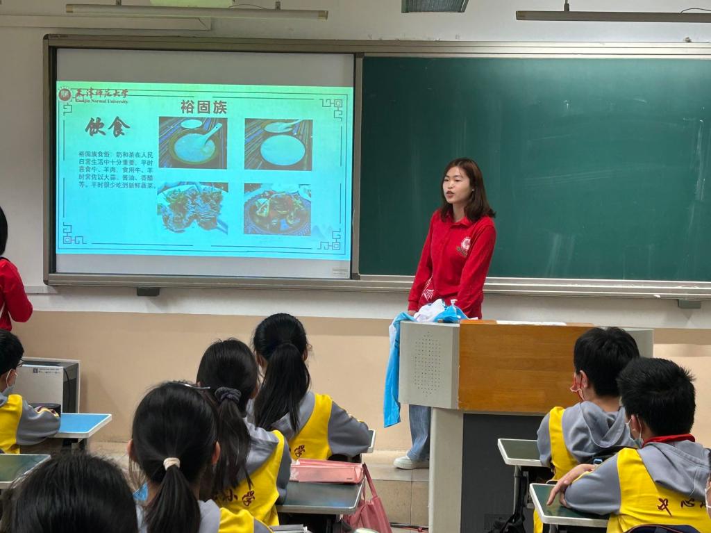 4月13日下午,天津师范大学ABG欧博网官方网站2201、2205、2206班的星火燎原志愿服务队再一次走进和平中心小学,怀抱着让小学生们在生动有趣的课堂中学习少数民族文化的美好期盼,继续上好民族团结思政课,讲授少数民族文化课程,持续赋能“双减”稳步推进。