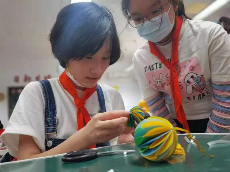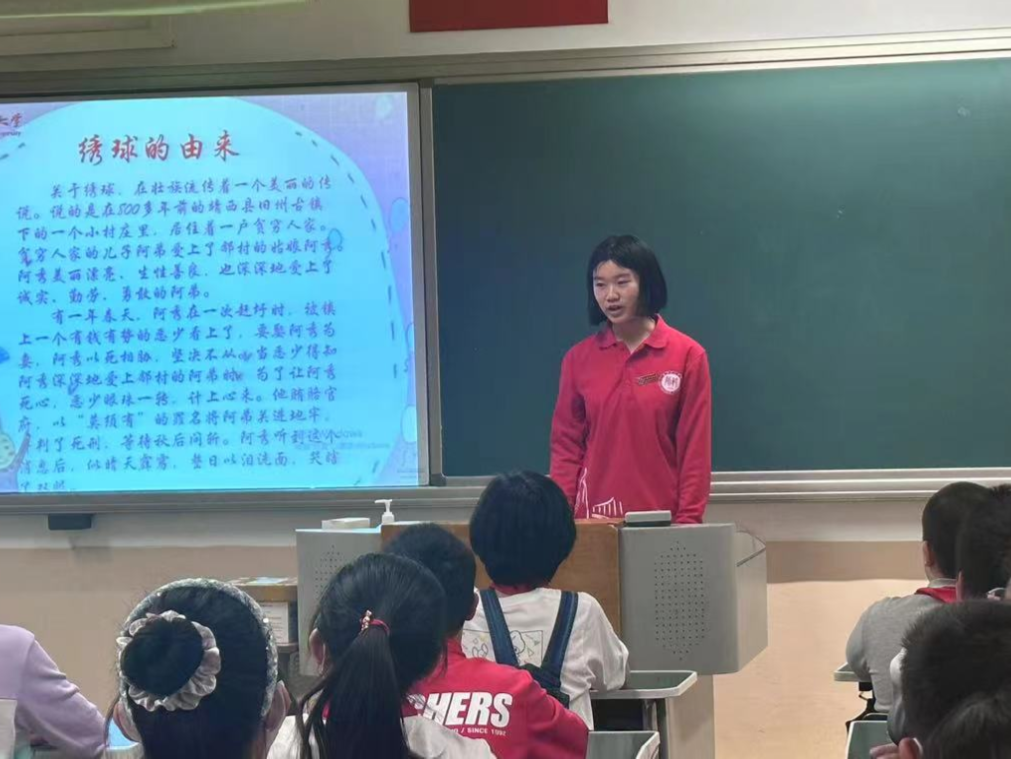 志愿者们精心设计,将富有趣味的手工环节与少数民族节日、服装等相结合,让同学们根据自己的理解绘制面具、绣球等极富少数民族色彩的物件,不仅丰富了课堂内容,也让民族文化知识的传播更加立体形象。