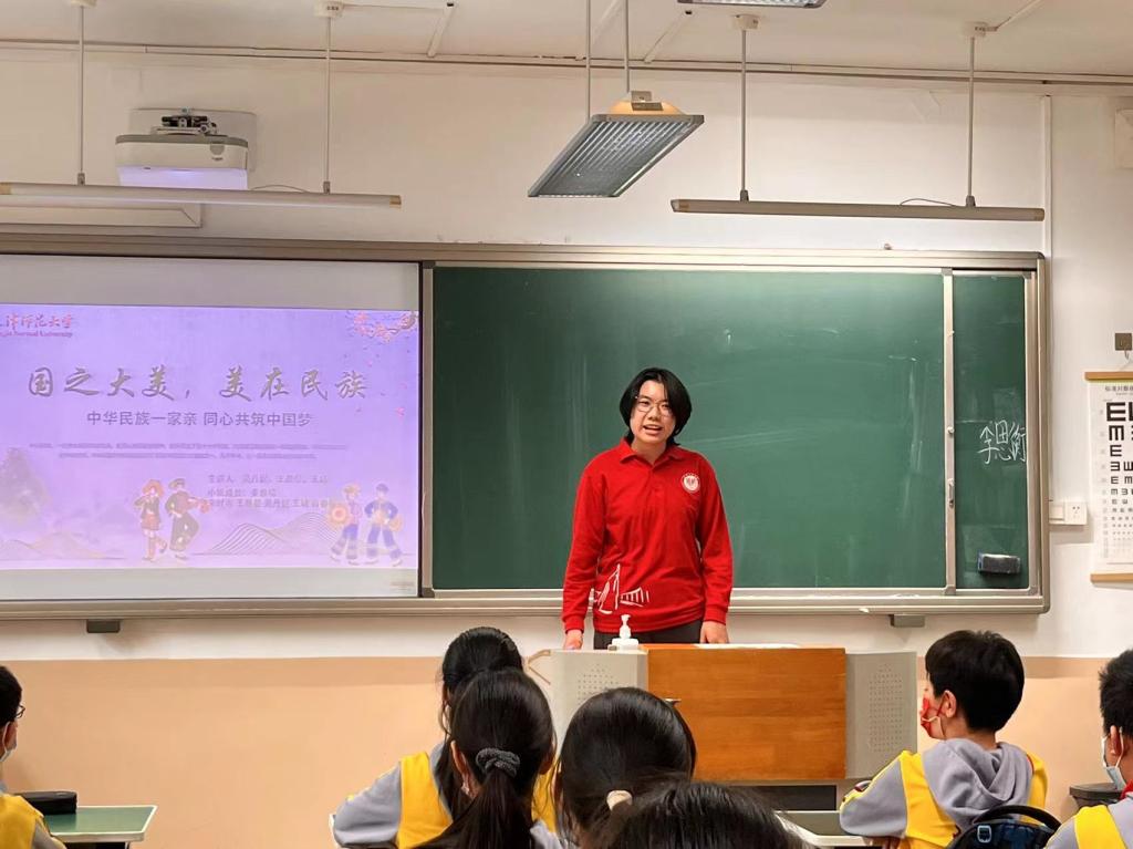此次课程让志愿者和小学生都受益匪浅,既帮助小学生们开阔了眼界,在生动有趣的学习体验中铸牢了中华民族共同体意识,又共同增强了民族自豪感,提升了爱国主义情怀。毕业于和平中心小学的志愿者王若男谈到:“6年前我以一名学生的身份从这里走出去,6年后我以一名“小老师”的身份再次走进来,站上讲台的那一刻,成为一名人民教师的信念变的更加坚定了。”志愿者姜雅晴说:“我的妈妈是一名人民教师,一直以来她是我学习的榜样,今天我能像她一样站在讲台上为同学们传播民族文化知识,我感到非常的骄傲和自豪。”