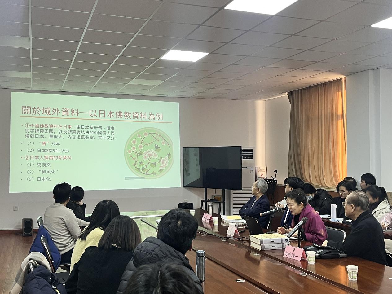 梁晓虹教授的讲座主题为:《日本写本资料研究——以日本佛教资料为中心》,内容丰富。主要讲述了以下四个方面内容:(1)从杏雨书屋引出日本写本资料的研究状况,以日本佛教资料为中心介绍一些重要域外写本资料,如杏雨书屋藏《说文解字·木部》残卷、古文孝经一卷,石山寺藏珍贵汉籍《玉篇》《史记》《春秋经传集解》等国宝级写本藏品,这些经卷对研究中国经部典籍日本古写本文献有着重要价值;(2)从佛教文献在日本的传播和保存情况出发,深入介绍日本佛教文献中保存的中国已散佚的佛教文献及其特色,如《七寺一切经》,非常接近原典的奈良朝写经系统的经典,是极具特色和研究价值的日藏写本文献。日僧所撰的佛经音义也是研究的重要方面,包括卷音义、音别音义和篇立音义等,以《法华经》、《大般若经》和《净土经》三部经之音义为代表。同时,梁教授还强调要从不同角度利用日僧所撰佛经音义,介绍三部对中国经部典籍日本古写本研究有直接帮助的资料:《妙法莲华经释文》、《净土三部经音义集》、《孔雀经音义》,并详细说明其特色与价值;(3)对五山文学与五山俗文学、柳田圣山先生所作“方语集”、抄物等日本禅宗资料以及日本的“本草书”,包括香要抄、药种抄、谷类抄、宝要抄等进行了相关讲解,对伊藤东涯的《名物六贴》等研究成果进行了总结,指出这些材料对于汉语词汇研究具有重要参考价值;(4)介绍中国学者尚未展开整理或研究的资料,如药草书研究、伊藤东涯等大儒的汉学研究资料、梵文古写本以及无著道忠同期或前后的大批禅学著作,为相关领域学者提供新的研究思路。域外写本资料珍贵而极富价值,很好地利用这些资料,有利于相关学者开阔视野,从而使研究更进一步。