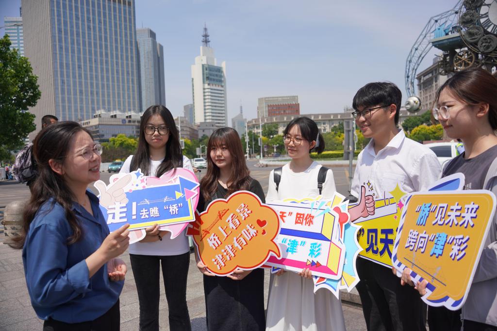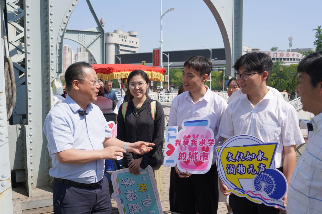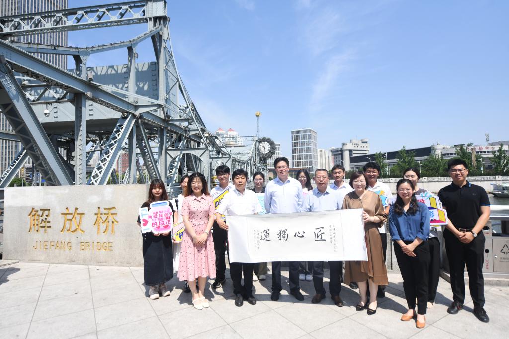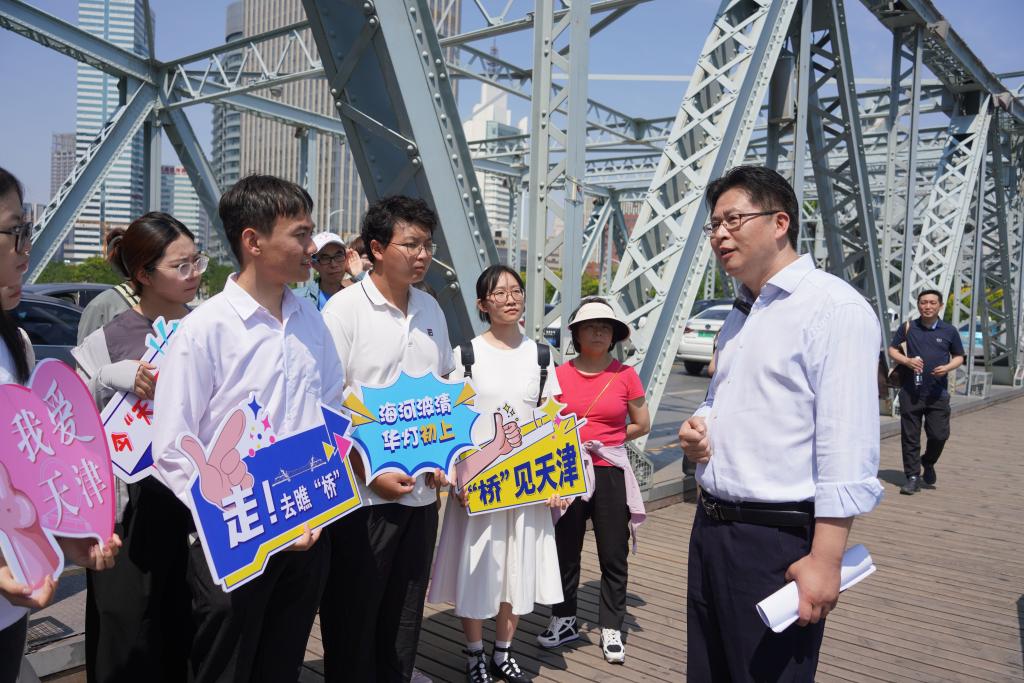 天津城建集团控股有限公司总经理吴冬粤,总工程师、首席专家韩振勇等为大学生讲解了海河上解放桥的“前世今生”以及本世纪初该集团对解放桥的提升改造工作。通过实地参观、专家讲解、互动体验等多种形式,让青年学子更加深入地了解解放桥卓越的建造工艺与深厚的历史内涵,让解放桥及其背后与天津发展同向同行的建桥史在新时代焕发新光彩。