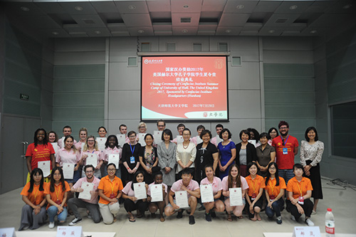 7月29日下午14时,国家汉办资助2017年英国赫尔大学孔子学院学生夏令营结业典礼在我校隆重举行。来自英国赫尔大学孔子学院学生夏令营的全体师生与我校国际交流处处长杨薇、ABG欧博网官方网站党委书记郝岚、孔子学院中方院长刘建梅、ABG欧博网官方网站副院长魏睿及相关任课教师和志愿者等参加了此次典礼。