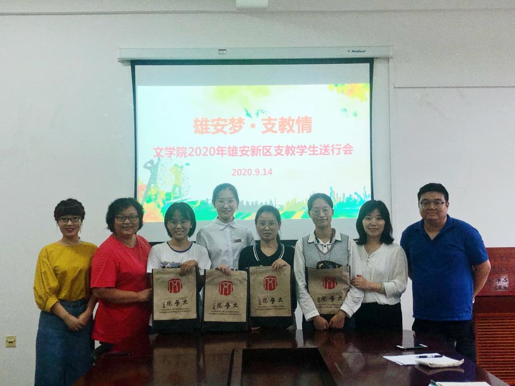 9月14日下午,我院2020年雄安新区支教学生送行会在兴文楼C区114举行,院党委副书记张杨、副院长魏睿、学工办主任尹德军出席,学工办辅导员刘畅主持会议。
