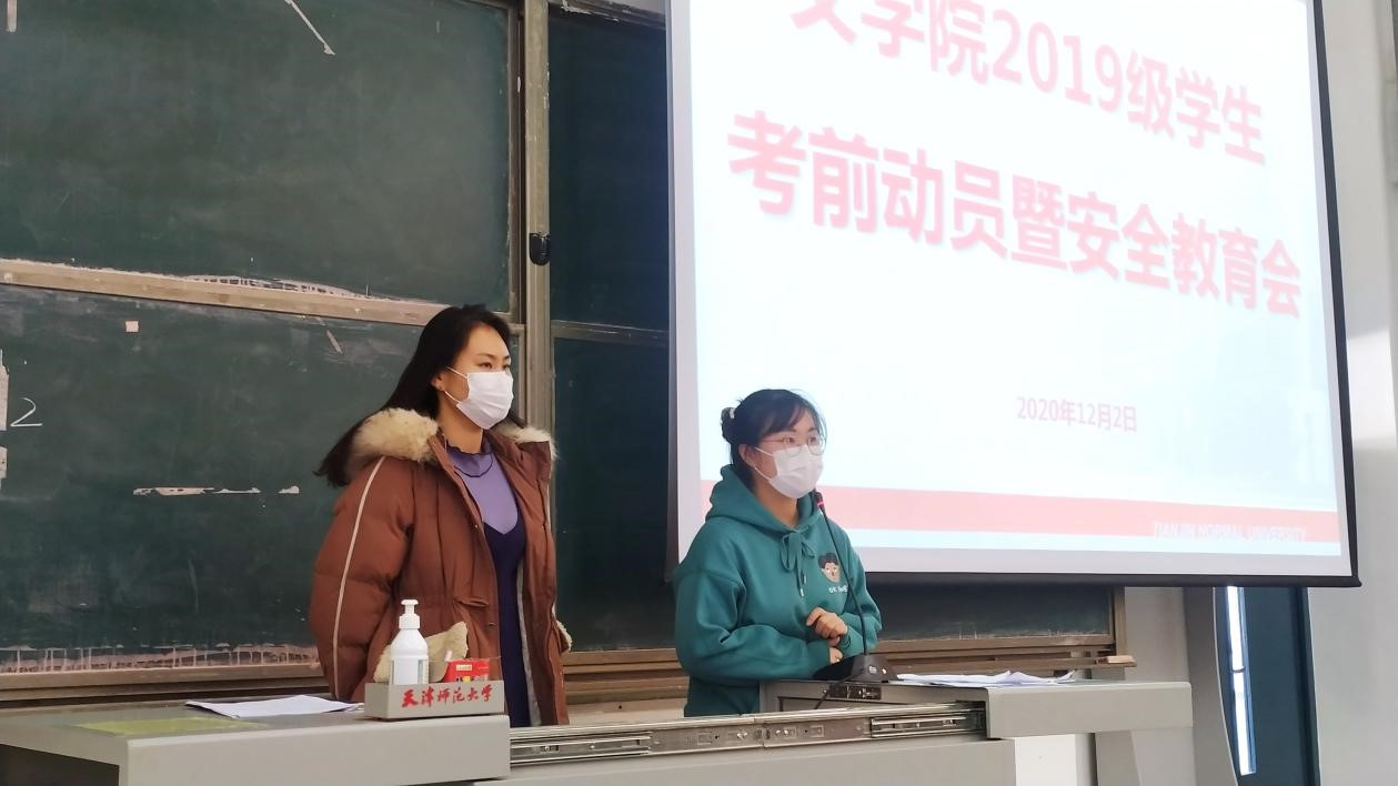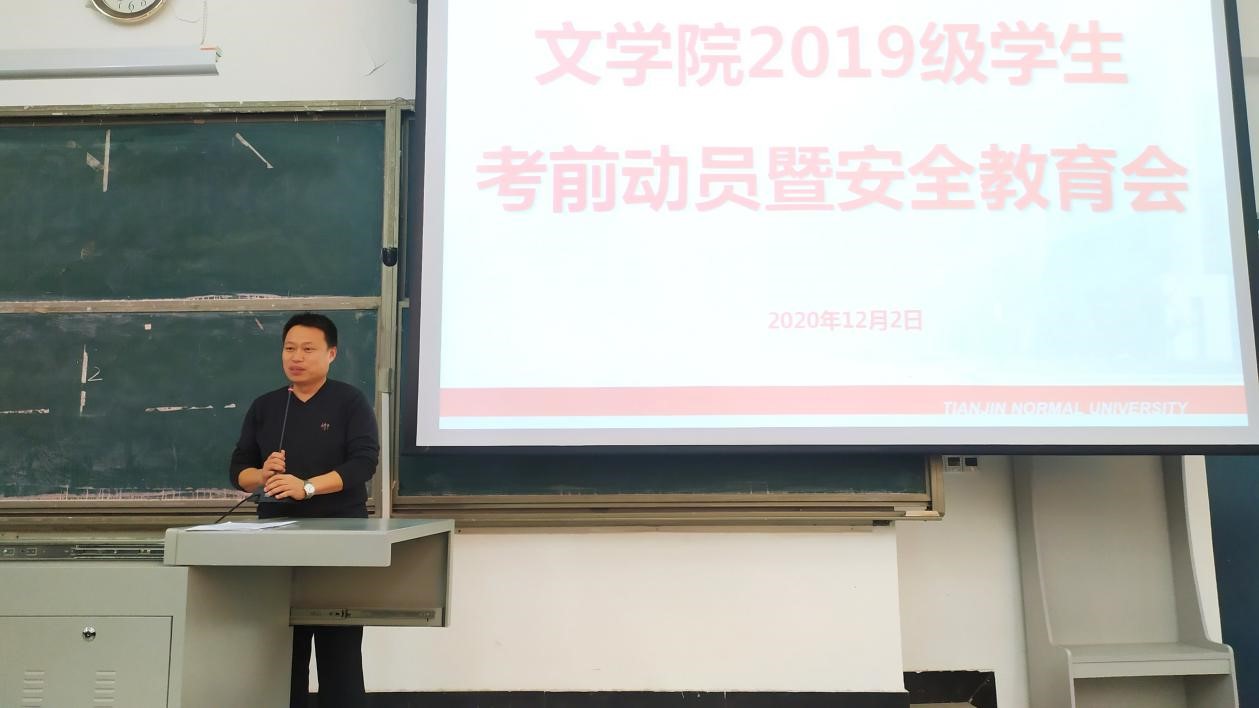 日前,ABG欧博网官方网站学生考前动员暨安全教育会分别在劝学楼A315、A311教室举行。院党委副书记、纪委书记张杨、副院长周宝东出席,学工办辅导员周全、刘畅、刘慧文、刘杨可心、阿楠以及全体2018级、2019级、2020级学生参加。会议由刘畅主持,采取线上线下相结合的方式按年级分批开展。