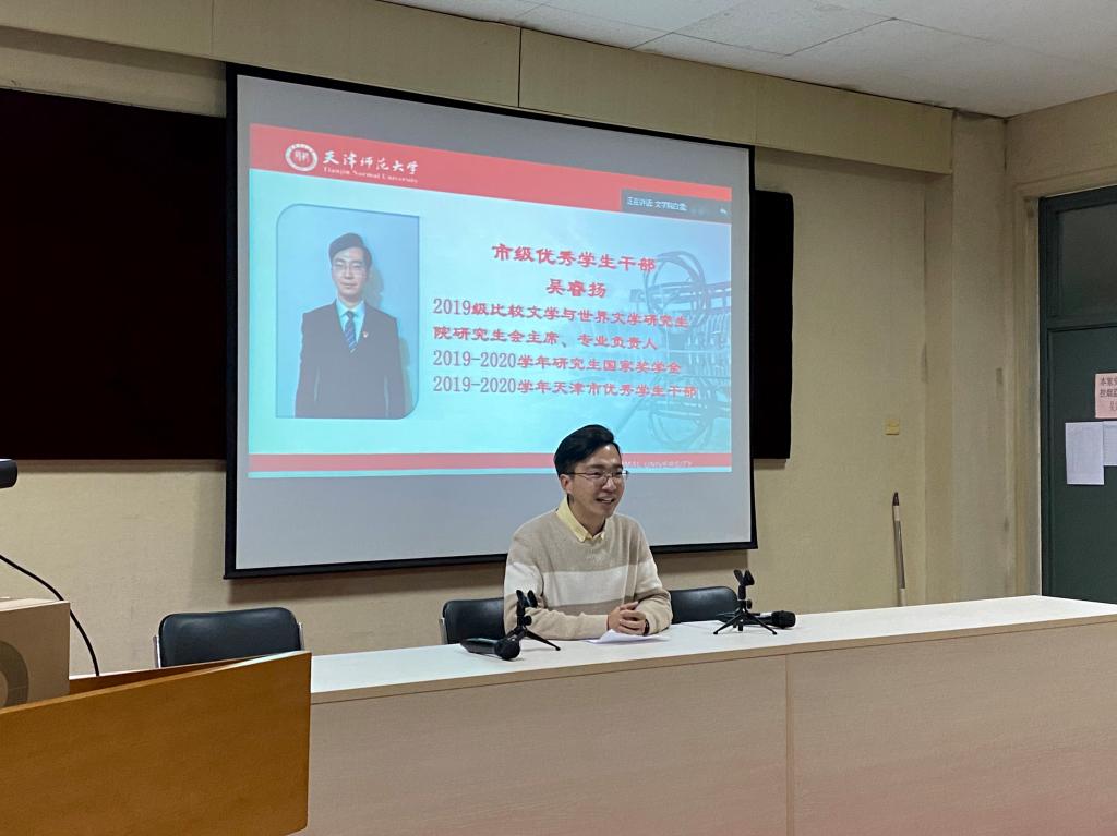 近日,ABG欧博网官方网站2020年学生干部培训暨优秀学生事迹宣讲会在兴文楼C109举行,线上分会场同步直播。ABG欧博网官方网站党委副书记、纪委书记张杨,ABG欧博网官方网站辅导员刘畅、周全、刘杨可心、阿楠,2019级比较文学与世界文学硕士研究生吴睿扬,学生会各部门成员参加会议,院学生会主席团成员张睿主持会议。