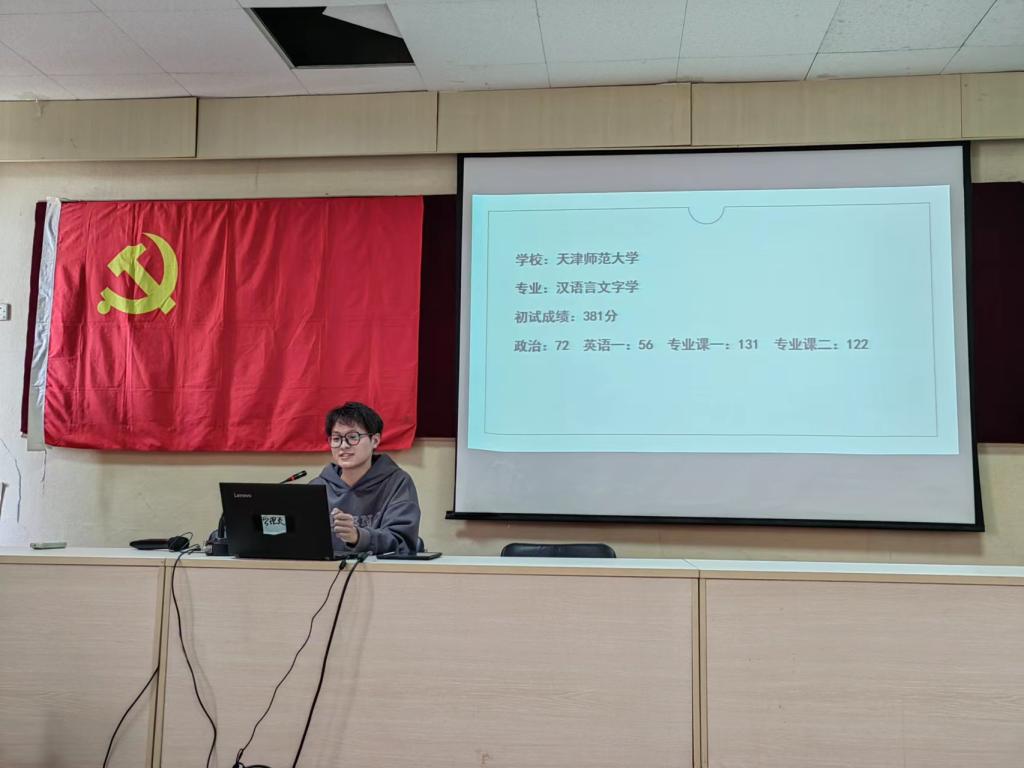 本次考研经验分享系列活动按照专业划分为多个专场,共举办汉语言文字学专场、学科教学(语文)专场、汉语国际教育专场、中国古代文学专场等讲座9场,邀请17位考研上岸同学分享他们一路走来的心路历程和复习经验:高蕊同学就专业课的复习方法展开讲解,程凤同学分享了他所了解的答题技巧,王杭淇同学跟同学们讲解了如何搜集复习资料,柴彤同学提醒大家注意复习教材的版本问题,周沁园同学就333的背诵提出建议,沈俐含同学分享了她复习时的时间规划,张建勋同学向大家讲述了调剂的注意事项,刘灿同学细致讲述了各科复习的每月任务,梁佳怡同学以自己的经历提醒大家在考研复习过程中要注意避“坑”,姚乐同学再三强调心态在考研中的重要性,朱启轩同学为大家讲解了如何择校和高效率复习,张博羽同学则分享了汉语国际教育专业的研究生生活,王婧如同学分享了自己在上海师范大学的中国古代文学专业研究生生活,刘婧羽同学以自身为例为同学们分析了400+分的经验,陈伟华同学提示大家要有语文教育思维,沈晓雪同学反复强调了背记的重要性,孙贵旭同学则为大家介绍了本校学科教学(语文)专业的考情……同学们从各自经验出发,截取最有价值的部分与2024届考研同学真诚分享,助力学弟学妹们在2024年考研中旗开得胜。线上线下共600余人次受益。